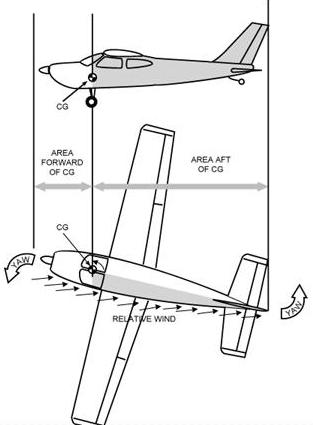 Keel effect depends upon the action of the relative wind on the side area of the airplane fuselage. In a slight slip, the fuselage provides a broad area upon which the relative wind will strike, forcing the fuselage to parallel the relative wind. This aids in producing lateral stability. [Figure 1-29] |