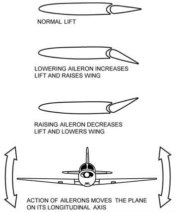 this and raises the aileron on the left wing and lowers the aileron on