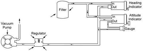 In some airplanes, all the gyros are vacuum, pressure, or electrically operated; in others, vacuum, or pressure systems provide the power for the heading and attitude indicators, while the electrical system provides the power for the turn coordinator.