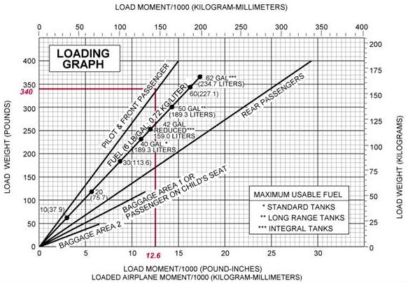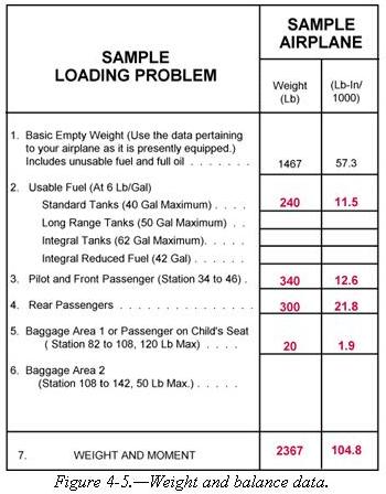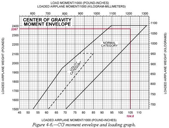 Another method used to determine the loaded weight and CG is the use of graphs provided by the manufacturers. The following is an example of the graph method. [Figures 4-5 and 4-6]