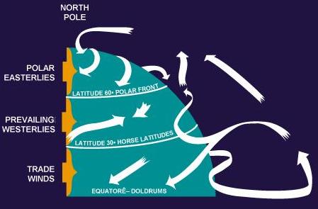 name of the direction from which they blow; a northwest wind is a “wind