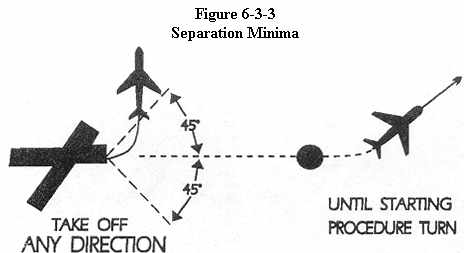 takes off before the arriving aircraft leaves a fix inbound not less than