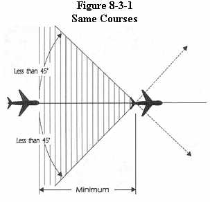 a. Same courses: Ensure that the spacing between aircraft is not less than the applicable minimum required. (See Figure 8-3-1)