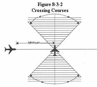 b. Crossing courses: Ensure that the spacing at the point of intersection is not less than the applicable minimum required. (See Figure 8-3-2)