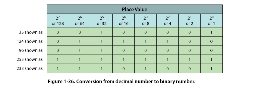 Additional decimal number to binary number conversions are shown in Figure 1-36.