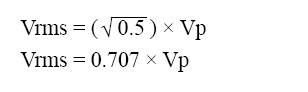 The peak value of a sine wave can be converted to the corresponding RMS value using the following relationship.