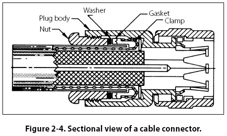A full section view is used when the interior construction or hidden features of an object cannot be shown clearly by exterior views. For example, Figure 2-4, a sectional view of a coaxial cable connector, shows the internal construction of the connector.
