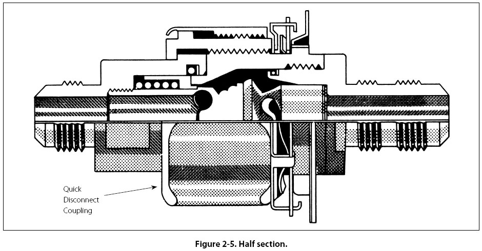 Figure 2-5 is a half sectional view of a quick disconnect used in aircraft fluid systems.