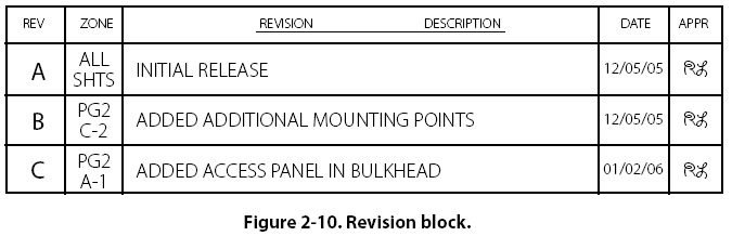 When drawings contain such corrections, attention is directed to the changes by lettering or numbering them and listing those changes against the symbol in a revision block. [Figure 2-10] The revision block contains
