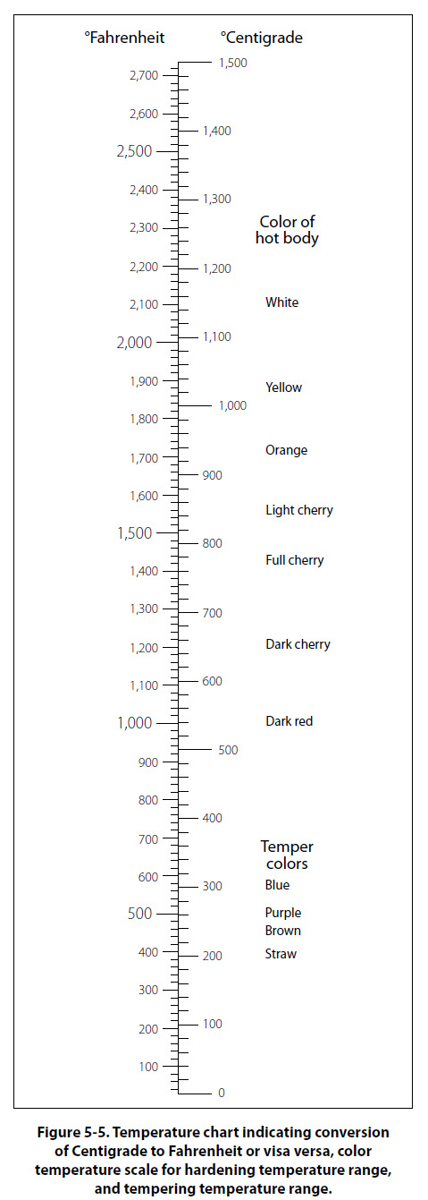 Heat-Treating Equipment Successful heat treating requires close control over all factors affecting the heating and cooling of metals. Such control is possible only when the proper equipment is available and the equipment is selected to fit the particular job. Thus, the furnace must be of the proper size and type and must be so controlled that temperatures are kept within the limits prescribed for each operation. Even the atmosphere within the furnace affects the condition of the part being heat treated. Further, the quenching equipment and the quenching medium must be selected to fit the metal and the heattreating operation. Finally, there must be equipment for handling parts and materials, for cleaning metals, and for straightening parts. Furnaces and Salt Baths There are many different types and sizes of furnaces used in heat treatment. As a general rule, furnaces are designed to operate in certain specific temperature ranges and attempted use in other ranges frequently results in work of inferior quality. In addition, using a furnace beyond its rated maximum temperature shortens its life and may necessitate costly and time consuming repairs. Fuel fired furnaces (gas or oil) require air for proper combustion and an air compressor or blower is therefore necessary. These furnaces are usually of the muffler type; that is, the combustion of the fuel takes place outside of and around the chamber in which the work is placed. If an open muffler is used, the furnace should be designed to prevent the direct impingement of flame on the work. In furnaces heated by electricity, the heating elements are generally in the form of wire or ribbon. Good design requires incorporation of additional heating elements at locations where maximum heat loss may be expected. Such furnaces commonly operate at up to a maximum temperature of about 2,000 °F. Furnaces operating at temperatures up to about 2,500 °F usually employ resistor bars of sintered carbides. Temperature Measurement and Control Temperature in the heat-treating furnace is measured by a thermoelectric instrument known as a pyrometer. This instrument measures the electrical effect of a thermocouple and, hence, the temperature of the metal being treated. A complete pyrometer consists of three parts—a thermocouple, extension leads, and meter. Furnaces intended primarily for tempering may be heated by gas or electricity and are frequently equipped with a fan for circulating the hot air. Salt baths are available for operating at either tempering or hardening temperatures. Depending on the composition of the salt bath, heating can be conducted at temperatures as low as 325 °F to as high as 2,450 °F. Lead baths can be used in the temperature range of 650 °F to 1,700 °F. The rate of heating in lead or salt baths is much faster in furnaces. Heat-treating furnaces differ in size, shape, capacity, construction, operation, and control. They may be circular or rectangular and may rest on pedestals or directly on the floor. There are also pit-type furnaces, which are below the surface of the floor. When metal is to be heated in a bath of molten salt or lead, the furnace must contain a pot or crucible for the molten bath. The size and capacity of a heat-treating furnace depends on the intended use. A furnace must be capable of heating rapidly and uniformly, regardless of the desired maximum temperature or the mass of the charge. An oven-type furnace should have a working space (hearth) about twice as long and three times as wide as any part that will be heated in the furnace. Accurate temperature measurement is essential to good heat treating. The usual method is by means of thermocouples: the most common base metal couples are copper-constantan (up to about 700 °F), iron-constantan (up to about 1,400 °F), and chromel-alumel (up to about 2,200 °F). The most common noble metal couples (which can be used up to about 2,800 °F) are platinum coupled with either the alloy 87 percent platinum (13 percent rhodium) or the alloy 90 percent platinum (10 percent rhodium). The temperatures quoted are for continuous operation. The life of thermocouples is affected by the maximum temperature (which may frequently exceed those given above) and by the furnace atmosphere. Iron-constantan is more suited for use in reducing and chromel-alumel in oxidizing atmospheres. Thermocouples are usually encased in metallic or ceramic tubes closed at the hot end to protect them from the furnace gases. A necessary attachment is an instrument, such as a millivoltmeter or potentiometer, for measuring the electromotive force generated by the thermocouple. In the interest of accurate control, place the hot junction of the thermocouple as close to the work as possible. The use of an automatic controller is valuable in controlling the temperature at the desired value. Pyrometers may have meters either of the indicating type or recording type. Indicating pyrometers give direct reading of the furnace temperature. The recording type produces a permanent record of the temperature range throughout the heating operation by means of an inked stylus attached to an arm which traces a line on a sheet of calibrated paper or temperature chart. Pyrometer installations on all modern furnaces provide automatic regulation of the temperature at any desired setting. Instruments of this type are called controlling potentiometer pyrometers. They include a current regulator and an operating mechanism, such as a relay. Heating The object in heating is to transform pearlite (a mixture of alternate strips of ferrite and iron carbide in a single grain) to austenite as the steel is heated through the critical range. Since this transition takes time, a relatively slow rate of heating must be used. Ordinarily, the cold steel is inserted when the temperature in the furnace is from 300 °F to 500 °F below the hardening temperature. In this way, too rapid heating through the critical range is prevented. If temperatur