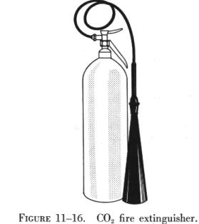 The selection of a fire extinguisher for ground installation, shop, fueling station, etc., is not restricted as it is for airborne installations. The range of selection for agent and type extinguishers is shown in figure 11-11. (See figure 11-16 and figure 11-17). Methods of Extinguisher Operation. The methods of operation of extinguishers are most conveniently arranged by grouping extinguishers according to their expelling means. Six methods are in common use. |