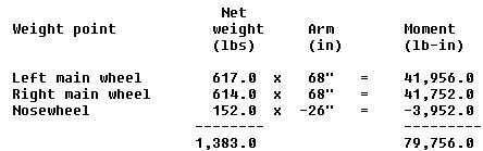 The CG location is found through the progressive use of two formulas. First calculate the total moments using the following formulas: