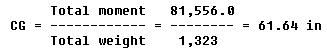 Consequently, the CG, as weighed, is 57.67 in from the datum.