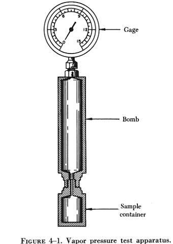 Vaporization of gasoline in fuel lines results in a reduced supply of gasoline to the engine. In severe cases, it may result in engine stoppage. This phenomenon is referred to as vapor locking. A measure of a gasoline's tendency to vapor lock is obtained from the Reid vapor pressure test. In this test a sample of the fuel is sealed in a "bomb" equipped with a pressure gauge. The apparatus (see figure 4-1) is then immersed in a constant temperature bath and the indicated pressure is noted. The higher the corrected vapor pressure of the sample under test, the more susceptible it is to vapor locking. Aviation gasolines are limited to a maximum of 7 psi because of their increased tendency to vapor lock at high altitudes. Carburetor Icing Carburetor icing is also related to volatility. When the fuel changes from a liquid to a vapor state, it extracts heat from its surroundings to make this change. The more volatile the fuel, the more rapid the heat extraction will be. As the gasoline leaving the carburetor discharge nozzle vaporizes, it can freeze water vapor contained in the incoming air. The moisture freezes on the walls of the induction system, the venturi throat, and the throttle valves. This type of ice formation restricts the fuel and air passages of the carburetor. It causes loss of power and, if not eliminated, eventual engine stoppage. Extreme icing conditions can make operation of the throttle controls impossible. This icing condition is most severe in the temperature range of 30° to 40° F outside air temperature. |