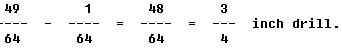THEN: To determine the drill size, subtract 1/64 inch from the finished hole size.