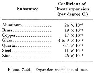 Figure 7-44 contains a list of the coefficients of linear expansion for some common substances.