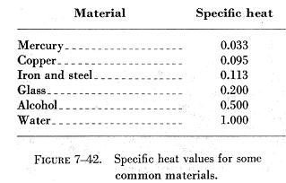 One important way in which substances differ is in the requirement of different quantities of heat to produce the same temperature change in a given mass of the substance. Each substance requires a quantity of heat, called its specific heat capacity, to increase the temperature of a unit of its mass 1° C. The specific heat of a substance is the ratio of its specific heat capacity to the specific heat capacity of water. Specific heat is expressed as a number which, because it is a ratio, has no units and applies to both the English and the metric systems.