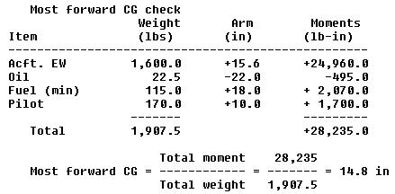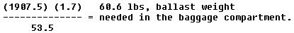 Without ballast placed somewhere aft to bring the CG within the designated limits of +16.5 in to +20.0 in, the aircraft is unsafe to fly when loaded with the pilot and minimum fuel. The problem of determining how many pounds of ballast are needed to move the CG within the approved limits can be solved by using the following formula: |