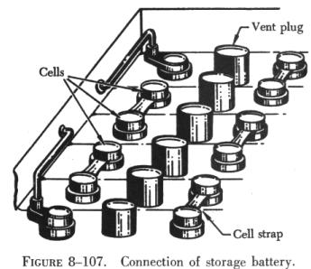 Each cell is seated in a hard rubber casing through the top of which are terminal posts and a hole into which is screwed a nonspill vent cap (4). The hole provides access for testing the strength of the electrolyte and adding water. |