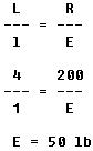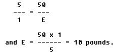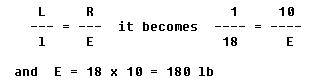 Here, L = 5 inches; l = 1 inch; R = 50 pounds, and E is unknown. Substitute the numbers in their proper places; then
