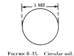 Figure 8-15 illustrates a circle having a diameter of 1 mil. The area in circular mils is obtained by squaring the diameter measured in mils. Thus, a wire with a diameter of 25 mils has an area of 25 squared, or 25 x 25, or 625 circular mils.