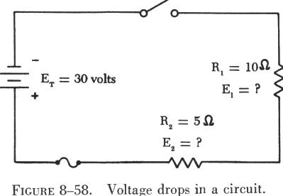In figure 8-58, the applied voltage (the battery) is 30 volts and is labeled