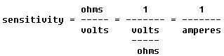 This is the same as saying that the sensitivity is equal to the reciprocal of the current (in amperes); that is,