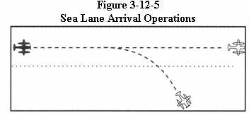 Separate an arriving aircraft from another aircraft using the same sea lane by ensuring that the arriving aircraft does not cross the landing threshold until one of the following conditions exists: