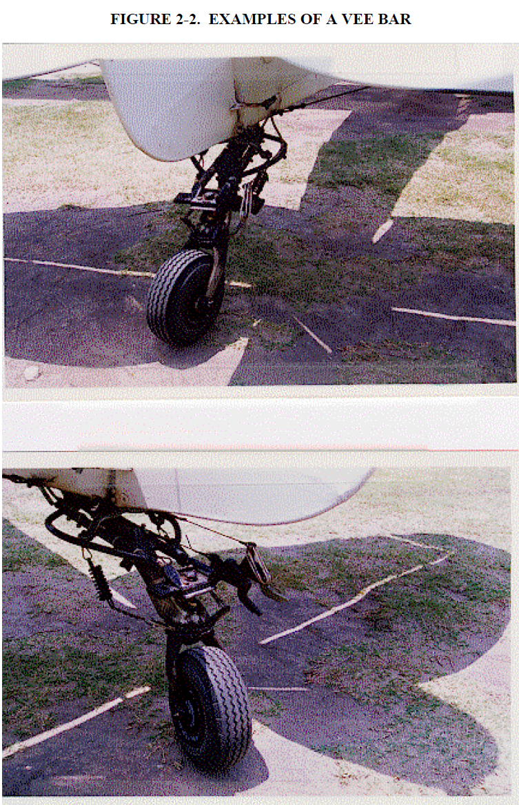 The configuration of some aircraft may not permit the use of keepers to hold the grapple line away from the airframe. As an alternate method, the use of a rudder guard or Vee bar (if a multiple rope system is used), may be helpful. This device is attached to the aft fuselage and serves to guide the grapple line away from the tailwheel or control surface horns during deployment. See Figure 2-2, Examples of a Vee Bar.