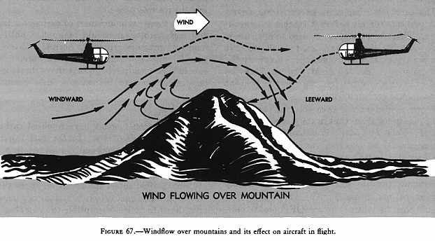 Figure 67 - Windflow over mountains and its effect on aircraft in flight.
