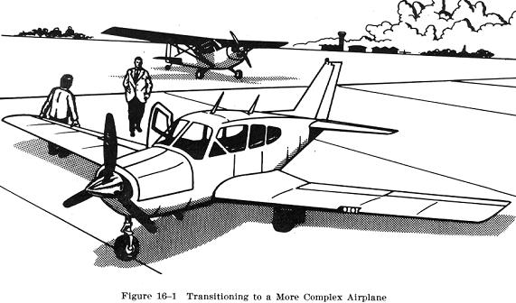 The transition from training type airplanes to larger and faster airplanes may be the pilot's first experience in airplanes equipped with a constant speed propeller, a retractable landing gear, and wing flaps (Fig. 16-1). All airplanes having a constant speed propeller require that the pilot have a thorough understanding of the need for proper combinations of manifold pressure (MP) and engine or propeller RPM which are prescribed in the airplane manufacturer's manuals.