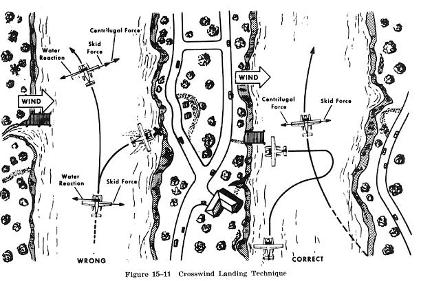 Because of restricted or limited areas of operation, it is not always possible to take off or land the seaplane directly into the wind. Such restricted areas may be canals or narrow rivers. Therefore, skill must be acquired in crosswind techniques to enhance the safety of seaplane operation.