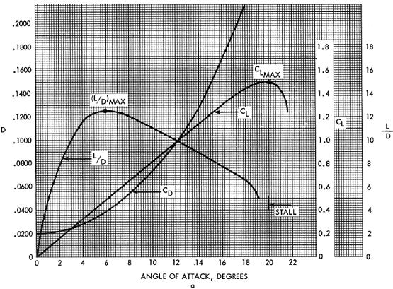 The fact that these graphs give the lift and drag in terms of coefficients should not be confusing. Coefficients are numbers indicating the amount of some change under certain specified conditions, often expressed as a ratio. These coefficients include the mathematical calculations that make it possible to multiply the coefficient by the density, area, and velocity factors corresponding to any particular condition to determine the lift and drag forces in pounds.