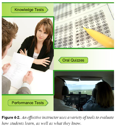 Assessment of learning is a complex process and it is important to be clear about the purposes of the assessment. There are several points at which assessments can be made: before training, during training, and after training. Learning assessment is another important skill of an effective instructor. [Figure 4-2] This topic is discussed in detail in Chapter 5, Assessment.