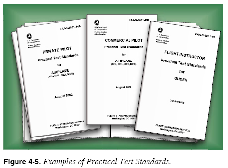 Description of the Skill or Behavior The description of the skill or behavior explains the desired outcome of the instruction. It is actually a learned capability, which may be defined as knowledge, a skill, or an attitude. The description should be in concrete terms that can be measured. Terms such as “knowledge of ...” and “awareness of ...” cannot be measured very well, and words like this should be avoided. Phrases like “able to select from a list of ...” or “able to repeat the steps to ...” are better because they describe something that can be measured. Furthermore, the skill or behavior described should be logical and within the overall instructional plan. Conditions Conditions are necessary to specifically explain the rules under which the skill or behavior is demonstrated. If a desired capability is to navigate from point A to point B, the objective as stated is not specific enough for all students to do it in the same way. Information such as equipment, tools, reference material, and limiting parameters should be included. For example, inserting conditions narrows the objective as follows: “Using sectional charts, a flight computer, and Cessna 172, navigate from point A to point B while maintaining standard hemispheric altitudes.” Sometimes, in the process of writing the objective, a difficulty is encountered. This might be someone saying, “But, what if ...?” This is a good indication that the original version was confusing to that person. If it is confusing to one person, it will be confusing to others and should be corrected. Criteria Criteria are the standards that measure the accomplishment of the objective. The criteria should be stated so that there is no question whether the objective has been met. In the previous example, the criteria may include that navigation from point A to point B be accomplished within 5 minutes of the preplanned flight time and that en route altitude be maintained within 200 feet. The revised performance-based objective may now read, “Using a sectional chart and a flight computer, plan a flight and fly from point A to point B in a Cessna 172. Arrival at point B should be within 5 minutes of planned arrival time and cruise altitude should be maintained within 200 feet during the en route phase of the flight.” The alert reader has already noted that the conditions and criteria changed slightly during the development of these objectives, and that is exactly the way it will occur. Conditions and criteria should be refined as necessary. As noted earlier, a PTS already has many of the elements needed to formulate performance-based objectives. In most cases, the objective is listed along with sufficient conditions to describe the scope of the objective. The PTS also has specific criteria or standards upon which to grade performance; however, the criteria may not always be specific enough for a particular lesson. An instructor should write performance-based objectives to fit the desired outcome of the lesson. The objective formulated in the last few paragraphs, for instance, is a well-defined lesson objective from the task, Pilotage and Dead Reckoning, in the Private Pilot PTS. The Importance of the PTS in Aviation Training Curricula PTS hold an important position in aviation training curricula because they supply the instructor with specific performance objectives based on the standards that must be met for the issuance of a particular aviation certificate or rating. [Figure 4-5] The FAA frequently reviews the test items in an attempt to maintain their validity in the current aviation environment. It is a widely accepted belief in the aviation community that test items included as part of a test or evaluation should be both content valid and criterion valid. Content validity means that a particular maneuver or procedure closely mimics what is required. Criterion validity means that the completion standards for the test are reflective of acceptable standards.
