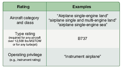 There are many possible combinations of certificates and ratings for aircraft category and class. For example, you might have a commercial pilot certificate with an airplane single-engine land rating. If you train and test in a multi-engine airplane to the private pilot certificate level rather than the commercial level, you will still have a commercial pilot certificate with an airplane single-engine land rating, but it will note that you have a multi-engine land rating with private pilot privileges. Endorsements An endorsement attests to the completion of ground and/or flight training required for specific operating privileges, or for airman certification testing. Except for certain endorsements made in pen and ink on a student pilot certificate, the endorsements required by 14 CFR part 61 fall into several broad categories. Student Pilots Because a student pilot certificate has no aircraft category and class ratings, operating privileges and limitations for solo flight are conveyed exclusively through instructor endorsements. Endorsements in this category are usually limited not just to aircraft category and class, but also to a specific make and model. Student pilot endorsements can also specify weather limitations. Sport pilots Like a student pilot certificate, a sport pilot certificate is issued without aircraft category and class ratings. Logbook endorsements specify the category, class, make, and model of aircraft that the sport pilot is authorized to fly as pilot in command. Testing for Certificate or Rating To take a knowledge test or practical test for most pilot certificates and ratings, the applicant must have endorsements attesting to aeronautical knowledge and flight proficiency (including aeronautical experience and practical test preparation requires in 14 CFR 61.31(a)(6)). The flight instructor applicant endorsements for completing the fundamentals of instruction and spin training fall into this category as well. Recurrent Training To maintain the operating privileges conferred by a pilot certificate or instrument rating, the pilot must have an endorsement for satisfactory completion of required recurrent training (e.g., flight review or instrument proficiency check). Aircraft Characteristics The requirement for a type rating is limited to large (greater than 12,500 lbs MGTOW) and turbojet-power aircraft. However, certain small and piston-powered aircraft have characteristics that require additional training for safe operation. For example, 14 CFR 61.69 specifies training and experience required for towing a glider. Specific additional aircraft training requirements are outlined in 14 CFR 61.31, and instructor endorsements that attest to the satisfactory completion of this training are the mechanism used to confer the necessary operating privilege. Endorsements related to aircraft characteristics include those for complex, high performance, high altitude, tailwheel, and glider ground operations. In addition, 14 CFR 61.31(h) provides for “additional aircraft type-specific training” in cases where the FAA has determined that such training is required.