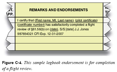 Appendix C Certificates, Ratings, and Endorsements Flight Instructor Endorsements The authority and responsibility for flight instructors to endorse initial student certificates, logbooks for solo and solo cross-country, additional aircraft ratings, and flight privileges are outlined in Title 14 of the Code of Federal Regulations (14 CFR) part 61. In addition, Advisory Circular (AC) 61-65, Certification: Pilots and Flight Instructors and Ground Instructors, provides guidance for pilots, flight instructors, ground instructors, and examiners on the certification standards, knowledge test procedures, and other requirements of 14 CFR part 61. By utilizing AC 61-65, the flight instructor does not omit any required endorsement for the rating sought, which ensures standardization. It is important for the flight instructor to understand and use AC 61-65 in the certification process. Additionally, flight instructors are required to make an endorsement in the student or applicant’s logbook or training record whenever the flight instructor provides flight or ground training. At a minimum this endorsement should include what actions or instruction were completed and if any regulatory requirements were met. Citing the appropriate portion of 14 CFR part 61 is also recommended. Flight instructors also have the responsibility to make logbook endorsements for pilots who are already certificated such as sport, recreational, private, commercial, and instrument rated pilots, as well as flight instructors. Typical endorsements include but are not limited to flight reviews, instrument proficiency checks, the additional training required for high performance, high altitude, and tail wheel aircraft, and types of glider launches. Additional rating applicants (e.g., multiengine add-on, seaplane add-on, glider add-on, helicopter add-on) are rated pilots and not considered student pilots in accordance with (IAW) 14 CFR part 61. Flight instructors must endorse the applicant’s logbook prior to solo flight and prior to being evaluated for that rating with an endorsement from AC 61-65 stating that the applicant is competent to act as the pilot in command (PIC) of an aircraft in which he or she does not hold a category or class rating. The flight instructor may add additional requirements or restrictions to the endorsement, such as an expiration date. Practical test endorsements are addressed in AC 61-65. These endorsements are regulatory and the pilot applicant must comply with them.