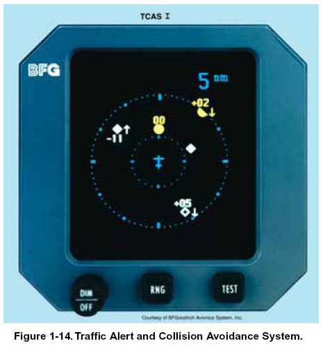 TCAS I allows the pilot to see the relative position and velocity of other transponder-equipped aircraft within a 10 to 20-mile range. [Figure 1-14] More importantly, TCAS I provides a warning when an aircraft in the vicinity gets too close. TCAS I does not provide instructions on how to maneuver in order to avoid the aircraft, but does supply important data with which the pilot uses to evade intruding aircraft.