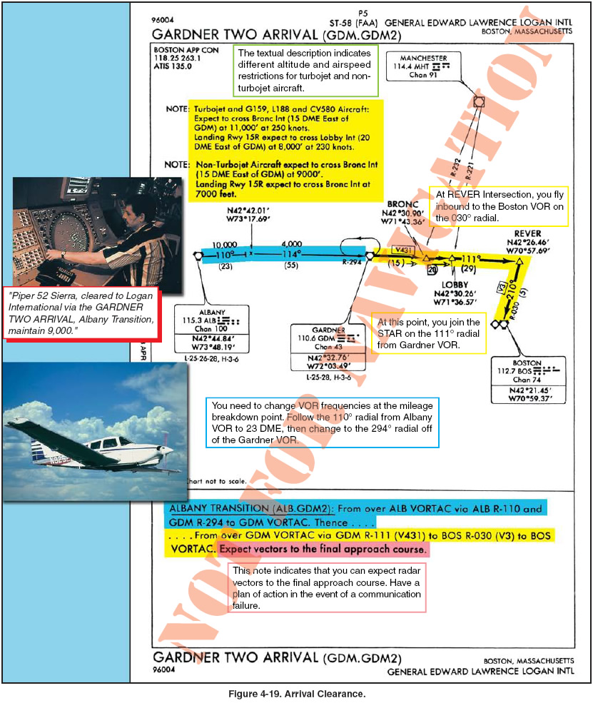Obtain the airport and weather information as early as practical. It is recommended that you have this information prior to flying the STAR. If you are landing at an airport with approach control services that has two or more published instrument approach procedures, you will receive advance notice of which instrument approaches to expect. This information is broadcast either by ATIS or by a controller. It may not be provided when the visibility is 3 statute miles (SM) or better and the ceiling is at or above the highest initial approach altitude established for any instrument approach procedure for the airport. [Figure 4-19 on page 4-20]