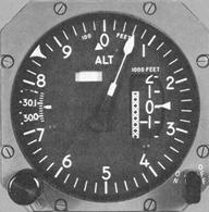 Trends in pressure altimeter design are to be seen in Figures 4-8 and 4-9. Both instruments are similar, differing mainly in presentation of the altimeter setting scales. For improved readability, the instruments provide readout of altitude in "thousands" of feet on the drum, while the single needle indicates altitude in "hundreds" of feet.