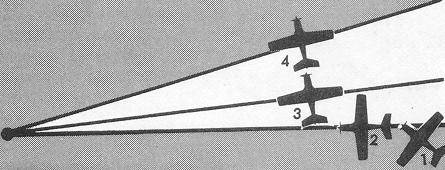 Wing-Tip Bearing Change. The formula solution is applied to the elapsed time for a predetermined change in azimuth, or relative bearing, from the aircraft to a station located at 90° from the aircraft heading (Fig. 8-7).
