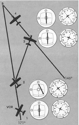 If your desired course is not the one that you are flying, you must orient yourself with respect to the VOR station and the course to be flown and work out a course interception problem. The following steps may be used to intercept a predetermined course, either inbound or outbound: (Steps 1-3 may be omitted if you turn directly to intercept course without initially turning to parallel the desired course.)