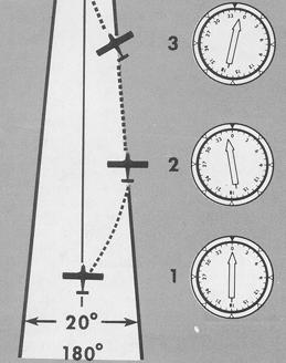 3. Double the number of degrees deflection to determine the interception angle. The angle should not be less than 20° nor greater than 90°. Turn to the interception heading. In this example, it is 300°.
