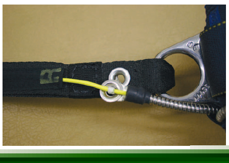 • Main riser rings. Check for webbing wear, hardware plating, grommet wear, and locking loop wear/damage. [Figure 4-45]