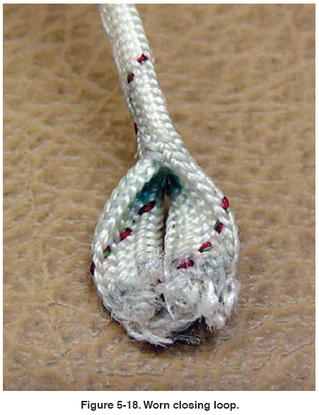 eye(s) of the loop on the inside for wear. It is not