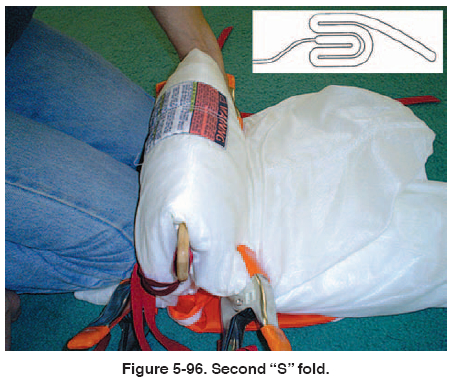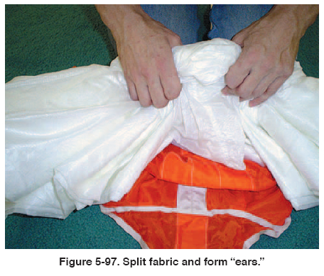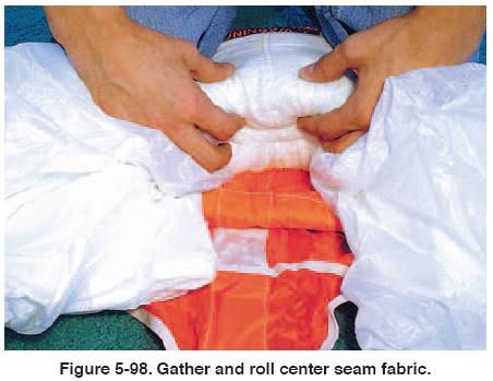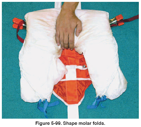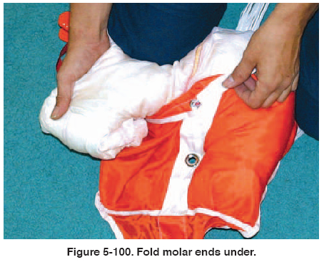 6. Fold the ends of the molar folds under to create the bulk necessary to fill the top of the reserve bag. [Figure 5-100]