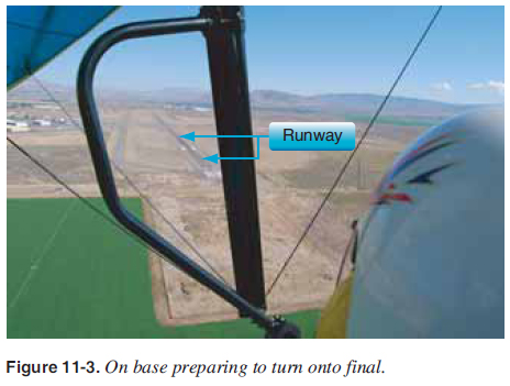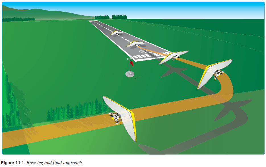 The placement of the base leg is one of the more important judgments made by the pilot in any landing approach. [Figure 11-1] The pilot must accurately judge the altitude and distance from which the descent results in landing at the desired point.