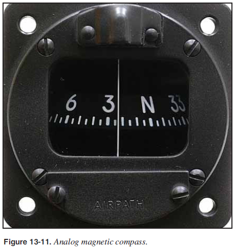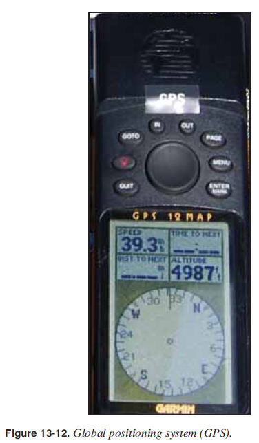 For aircraft not equipped with an attitude indicator, a magnetic compass [Figure 13-11] or a GPS [Figure 13-12] are the instruments that can be used for roll control. The compass stays stationary and the WSC aircraft rotates around the compass dial. A pilot is fl ying wings level if the compass heading is not changing. If the compass is changing direction, the aircraft is banked into a turn. Similarly, the GPS provides ground track. If fl ying wings level, the GPS ground track is steady. If the GPS ground track is changing, the aircraft is in a bank and turning.