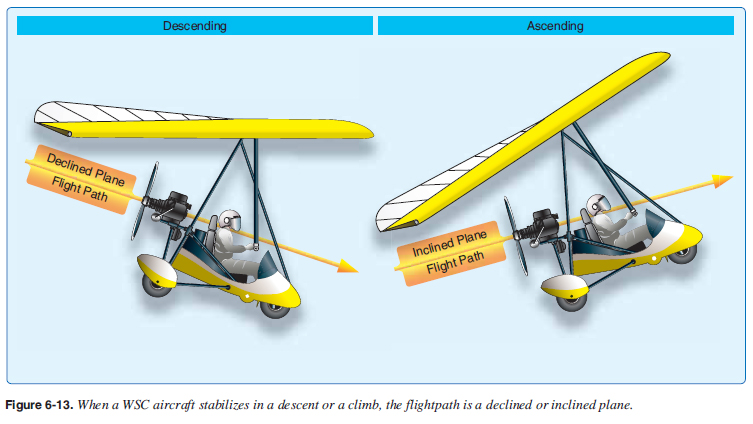 Climbs and Climbing Turns When an aircraft enters a climb, it changes its fl ightpath from level fl ight to an inclined plane or climb attitude. As discussed in chapter 2, weight in a climb no longer acts in a direction perpendicular to the fl ightpath. It acts in a rearward direction. This causes an increase in total drag requiring an increase in thrust (power) to balance the forces. An aircraft can only sustain a climb angle when there is suffi cient thrust to offset increased drag; therefore, climb is limited by the thrust available. [Figure 6-13]