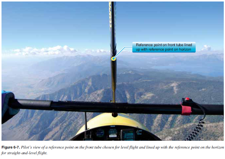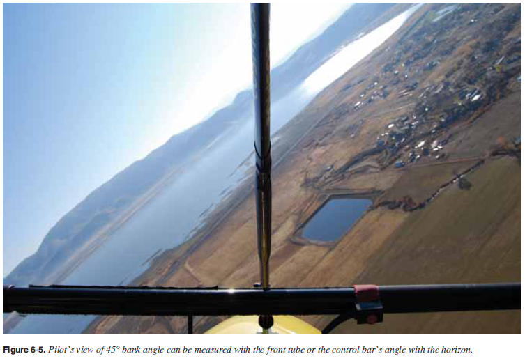 ![]() Straight-and-Level Flying Flying straight and level is the most important flight maneuver to master. It is impossible to emphasize too strongly the necessity for forming correct habits in fl ying straight and level. All fl ight is in essence a deviation from this fundamental fl ight maneuver. It is not uncommon to fi nd a pilot whose basic fl ying ability consistently falls just short of minimum expected standards, and upon analyzing the reasons for the shortcomings discover that the cause is the inability to fl y straight and level properly. In learning to control the aircraft in level fl ight, it is important that the control forces be exerted just enough to produce the desired result. Some wings are more responsive than others. The student should learn to associate the apparent movement of the control bar with the response in pitch and roll. In this way, the student can develop the ability to regulate the change desired in the aircraft’s attitude by the amount and direction of forces applied to the controls without the necessity of referring to outside references for each minor correction. Straight-and-level flight is flight in which a constant heading and altitude are maintained. It is accomplished by making immediate and measured corrections for deviations in direction and altitude from unintentional slight turns, descents, and climbs. Level fl ight is a matter of consciously fi xing the relationship of the position of something on the aircraft, used as a reference point with a point on the horizon. In establishing the reference point on the aircraft, place the aircraft in the desired position and select a reference point. A typical reference point on the WSC aircraft is a point on the front tube. The WSC aircraft reference point depends on where the pilot is sitting, the pilot’s height (whether short or tall), and the pilot’s manner of sitting. It is, therefore, important when establishing this relationship, the pilot sit in a normal manner; otherwise the points will not be the same when the normal position is resumed. [Figures 6-6 and 6-7] ![]() ![]() Straight-and-level fl ight should fi rst be practiced in calm air where the control movements determine the actual movement through the air and air movement has minimal effect on the aircraft’s altitude and direction. A trim speed needs to be set if the WSC aircraft has an infl ight trim system or the trim speed set on the ground is used. The throttle is adjusted so the aircraft is fl ying level, not climbing or descending. This can be determined by looking at the altimeter or the vertical speed indicator (if so equipped). The throttle setting is the control for maintaining level fl ight for a specifi c weight, loading, trim speed, and density altitude. Level fl ight is maintained by selecting some portion of the aircraft’s nose as a reference point, and then keeping that point in a fi xed position relative to the horizon. Using the principles of attitude fl ying, that position should be crosschecked occasionally against the altimeter to determine whether or not the throttle setting and pitch attitude are correct. If altitude is being gained or lost, the pitch attitude should be readjusted with the throttle in relation to the horizon. Then, recheck the altimeter to determine if altitude is being maintained and adjust the throttle accordingly. The throttle setting for this condition should be noted and all future changes in weight, trim speed, and density altitude referenced to this known throttle setting. After level fl ight is mastered in calm air, it can be practiced in air that is moving, minor turbulence or “active air.” The throttle settings for similar weight, trim, and density altitude are the same, but more pilot input is required to maintain a constant altitude. The throttle is used to maintain a selected distance above the reference point for local air movement, but the pitch pressure (nose up or nose down) is used to control this attitude for shorter duration air disturbances. Typically, updrafts or thermals raise the nose of the aircraft and downdrafts at the edge of thermals lower the nose of the aircraft. For minor updrafts the nose is lowered by pitch control input by the pilot slightly increasing the speed of the aircraft to keep the pitch at a constant level. In moderate to severe updrafts, the throttle can be reduced to assist in maintaining a reasonably constant pitch angle with the horizon. Similarly for minor downdrafts that lower the nose, the nose is raised by pitch control input by the pilot slightly decreasing the speed of the aircraft to keep the pitch at a constant level. An additional caution for raising the nose and decreasing the speed is that raising the nose too high could stall the aircraft. Therefore, caution must be exercised in moderate downdrafts not to reduce the speed too much to approach a stall speed/ critical angle of attack. Similar to reducing the throttle in updrafts to reduce pitch angle, increasing the throttle typically increases the pitch angle. [Figure 6-8] ![]() WSC aircraft can use the front tube as a reference to align perpendicular with the horizon and the wings leveled. It should be noted that any time the wings are banked even slightly, the aircraft will turn. The front tube can be used as an indicator to determine turn rate. If the bar is moving side to side to any established reference point, the aircraft is banked and should be corrected to eliminate any turn. The objective of straight-and-level fl ight is to detect small deviations from level fl ight as soon as they occur, necessitating only small corrections. Straight-and-level fl ight requires almost no application of control pressures if the aircraft is properly trimmed and the air is smooth. For that reason, pilots must not form the habit of constant, unnecessary control movement. Pilots should learn to recognize when corrections are necessary, and then make a measured response easily and naturally. C